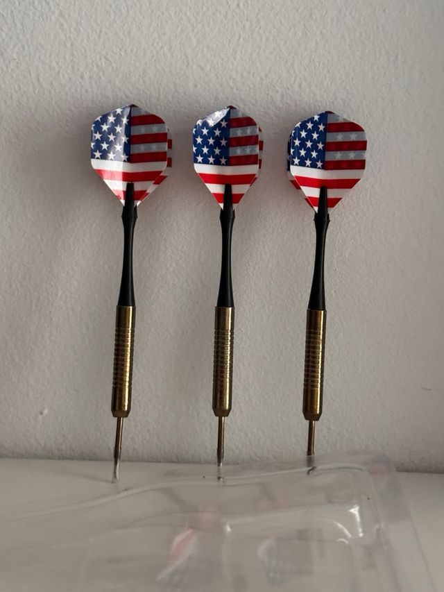 Detalles del productoDardos Punta de Hierro, con la bandera de EEUU, muy bonitos y buen estado general, si te interesan más objetos de deportes echa un vistazo a mi perfil!