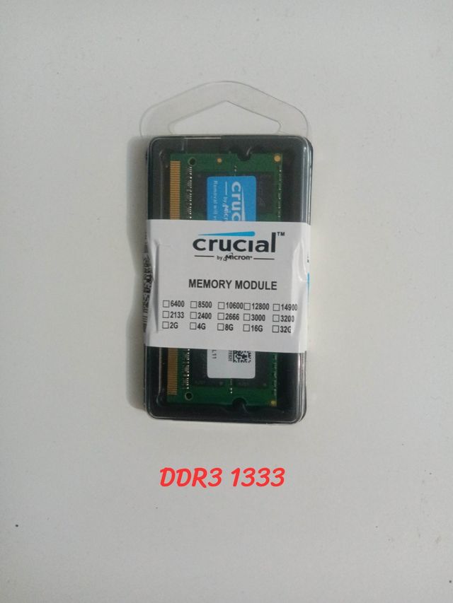 Módulo de 8gb ,memoria RAM Crucial DDR3 1333 Mhz PC3 10600 SO-DIMM. Sin estrenar,en su caja, Por favor precio no negociable