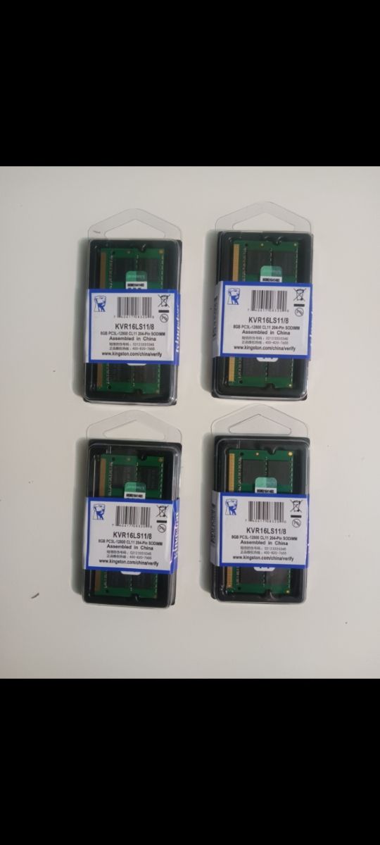 cuatro módulos de memoria RAM kingston. DDR3 L 1600 Mhz PC3L 12800 - Capacidad total: 32GB (4 x 8GB). Totalmente nuevas en su caja sin abrir, Por favor precio no negociable