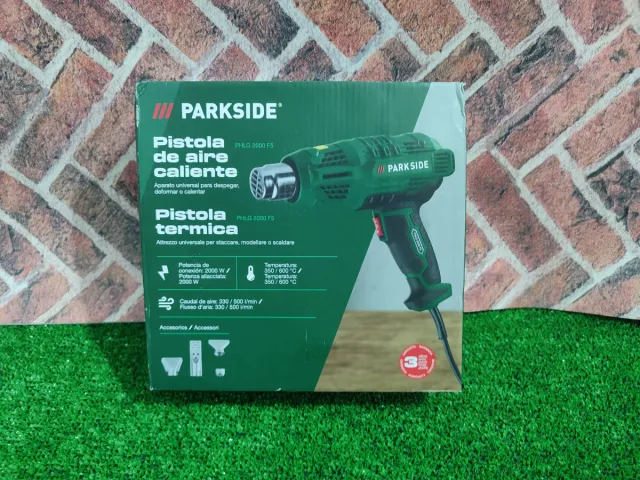 Detalles del productoPistola de aire caliente marca Parkside, ideal para despegar, deformar o calentar.
