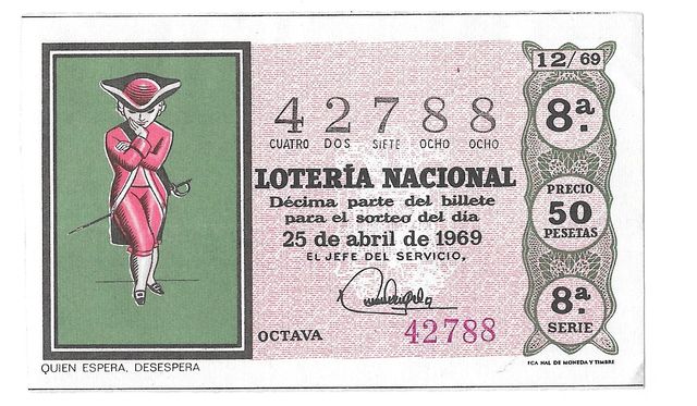 DÉCIMO DE LOTERIA DEL SORTEO DE LOTERÍA NACIONAL DE 1969