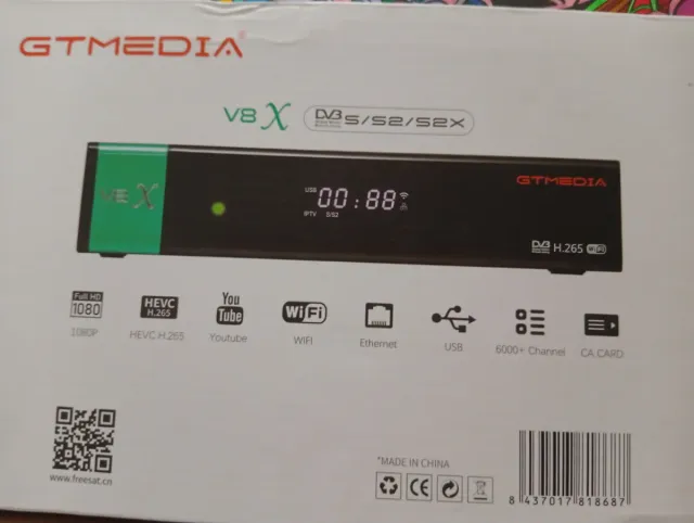 Detalles del productoDecodificador de satélite GTMEDIA V8X con capacidad para Full HD 1080p.