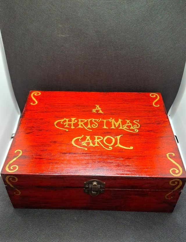 Detalles del productoSi deseas tener o regalar un objeto único y exclusivo esta es tu oportunidad. Caja de madera decorada y con 6 figuras para colgar en el árbol de navidad. Este artículo es de creación propia y no existe más, tenga lo en cuenta. Recrea a los personajes de Cuento de Navidad.