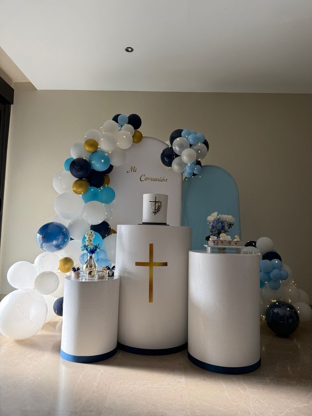 Detalles del productoDecoración personalizada para Primera Comunión. Diseño completo de mesa dulce y montaje integral adaptado a colores y temática.