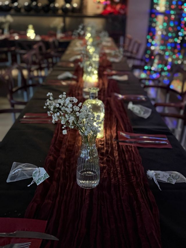 - Caminos de mesa de tela arrugada en color burdeos.