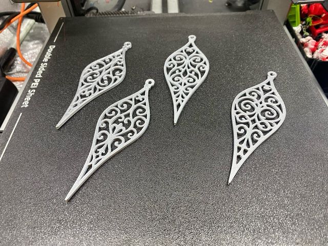 Detalles del productoConjunto de cuatro adornos colgantes con un diseño calado y elegante, perfectos para añadir un toque especial a tu árbol de Navidad o cualquier rincón de tu hogar.