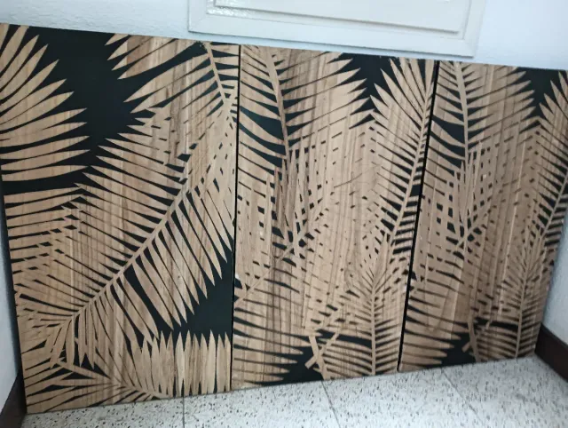 Decoración Pared 3 Marcos Madera Hoja Palmera Nuev
