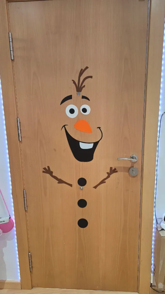 Decoración para puerta con el personaje de Olaf. - Diseño inspirado en Frozen. - Fácil de aplicar. - Impreso en 3d