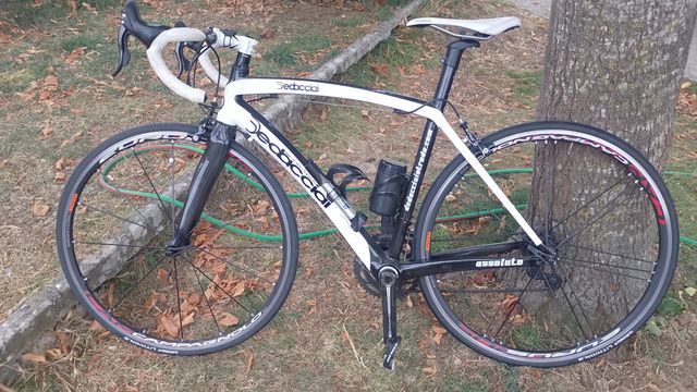 Detalles del productoBicicleta de carretera Dedaccia Absoluta con cuadro blanco y negro de carbono. No tiene ni un solo roce. Talla M. Unos 1000km andados. Es muy ligera.