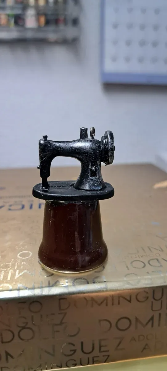 Detalles del productoEste es un dedal con forma de máquina de coser antigua, ideal para coleccionistas o como accesorio decorativo.