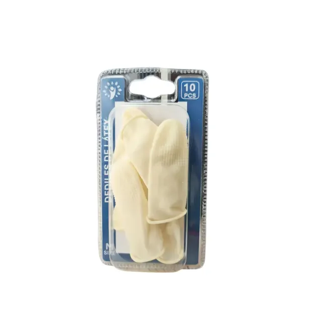 Pack de 10 dediles de látex natural en talla M. - Material: Látex natural. - Talla: M. - Cantidad: 10 unidades.