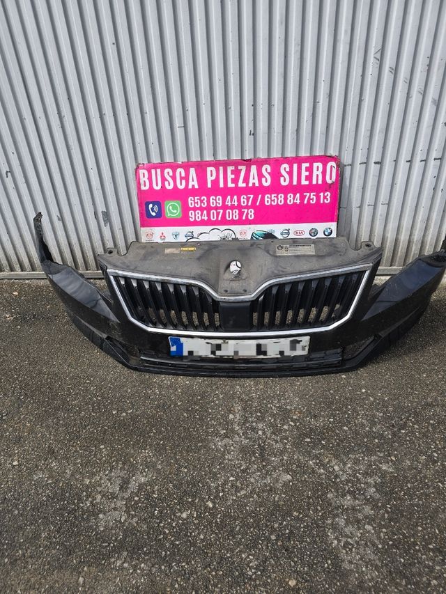 Defensa delantera sin parrilla para Skoda Superb. - Color negro.