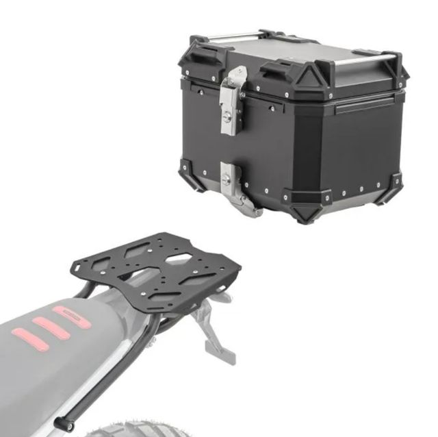 - Top case de aluminio con cerradura y asas, tamaño 65l.
