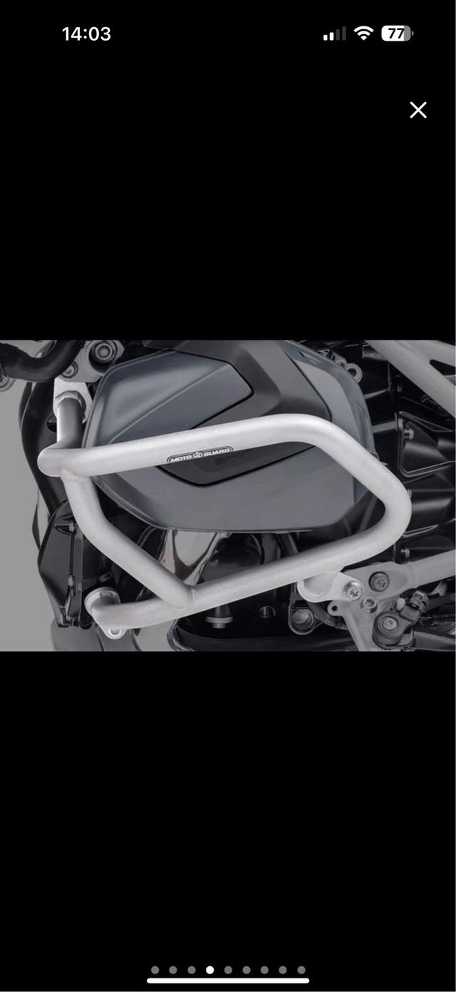 Protecciones de motor para motocicleta BMW. - Fabricadas en metal resistente. - Diseño tubular para máxima protección. - Acabado plateado.