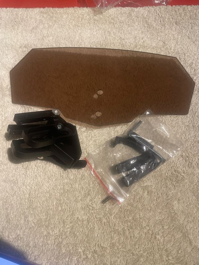 Deflector de viento para moto Honda CBR 125R. Incluye soportes y tornillería. - Pantalla ahumada. - Kit de montaje completo.