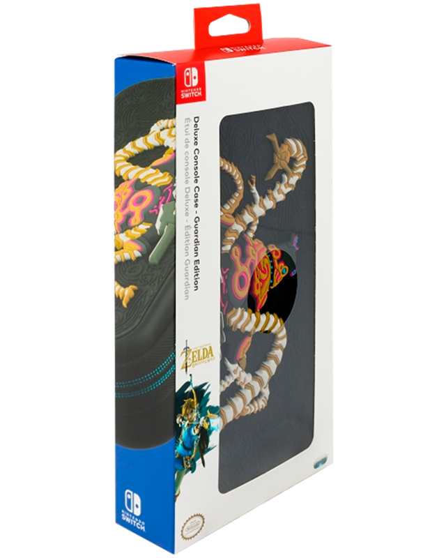 Detalles del productoFunda de protección y transporte edición Guardián Zelda con licencia oficial de Nintendo.Características-Funda rígida fabricada con EVA con detalles de Guardián Zelda microinyectados.-Diseñado para complementar el juego de Play & Protect Skins.-Permite proteger y transportar la consola y hasta 14 tarjetas de juego.-Apertura cremallera.