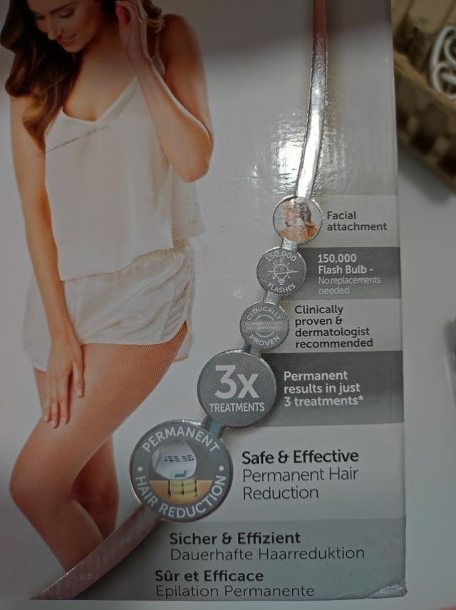 Detalles del productoDepiladora de luz pulsada con muy poco uso. Incluye un cabezal para zonas grandes y otro para zonas pequeñas. Está en el embalaje original. Regalo gafas protectoras que compré aparte. Medidas del producto