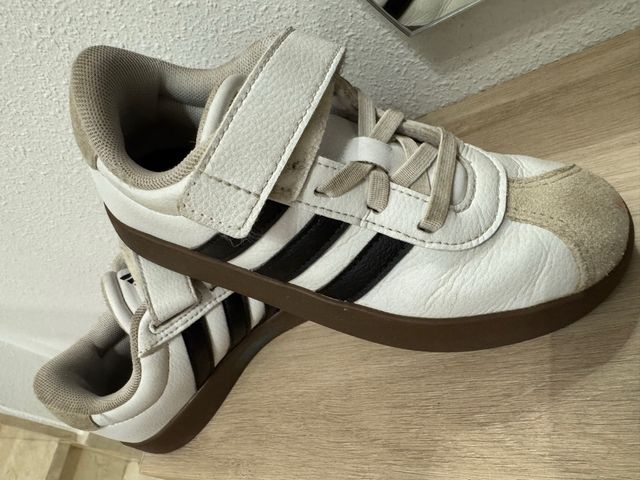 Zapatillas deportivas Adidas modelo Samba para niñ@s. - Talla 31. - Cierre de velcro y cordones. - Diseño clásico con tres rayas.