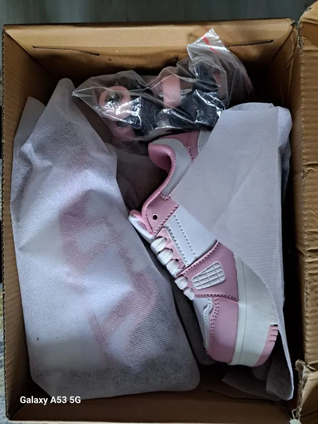 Zapatillas deportivas con ruedas integradas, perfectas para deslizarse. - Diseño en color rosa y blanco. - Cierre con cordones.