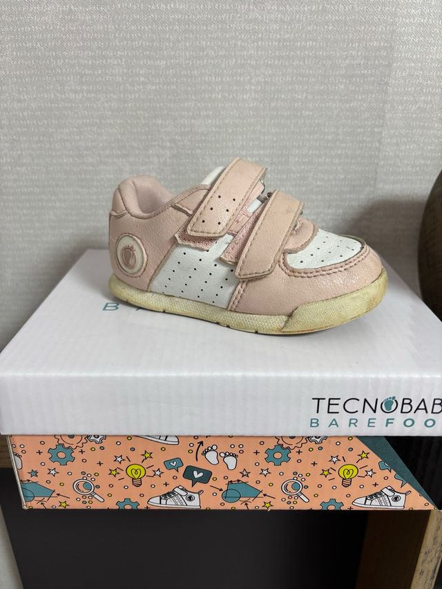 Zapatillas deportivas para niña de la marca Tecnobaby. Número 21 - Color rosa y blanco. - Cierre de velcro. - Detalle de pie en el lateral.