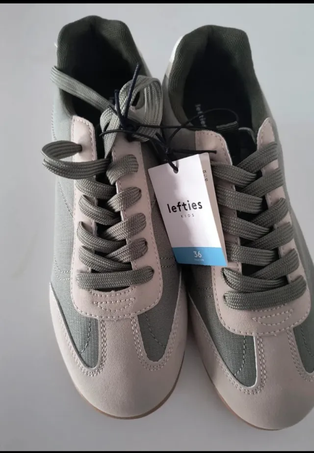 Zapatillas deportivas Lefties en color verde y beige. - Talla 36. - Cierre con cordones. - Diseño casual.