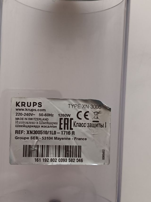 Depósito de agua para cafetera Krups. - Modelo: XN 3005. - Fabricado en Suiza. - Referencia: XN300510/1L0-1716 R.
