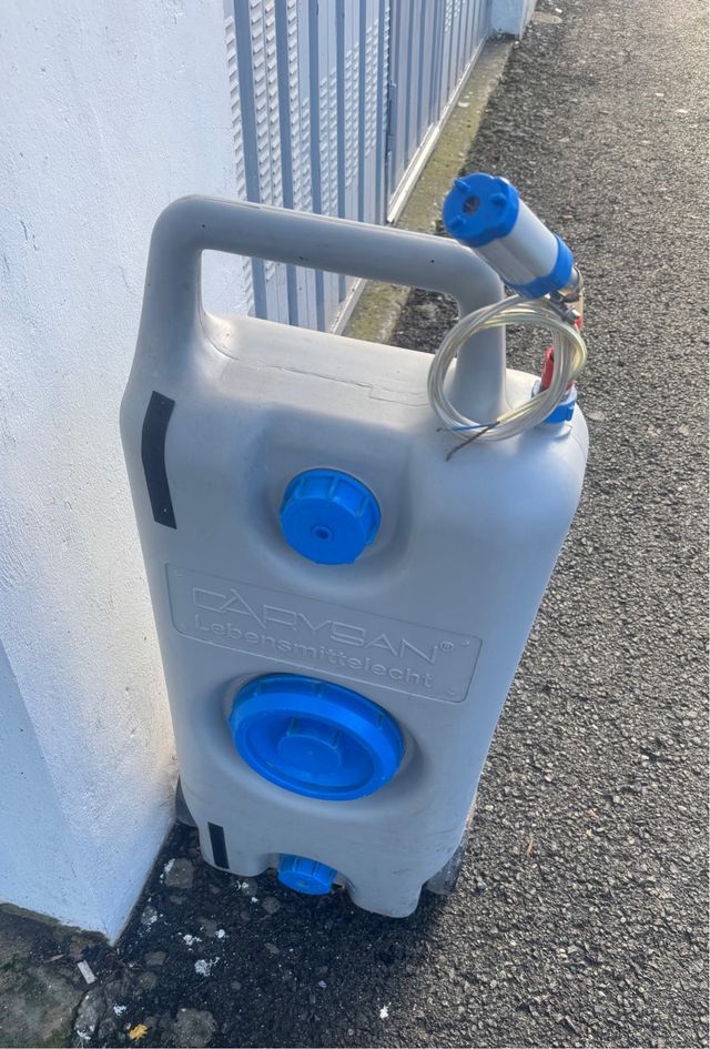 Detalles del productoDepósito para furgoneta Camper de aproximadamente 35L con bomba incluida en el precio, está usado pero sin fugas, golpes, daños...