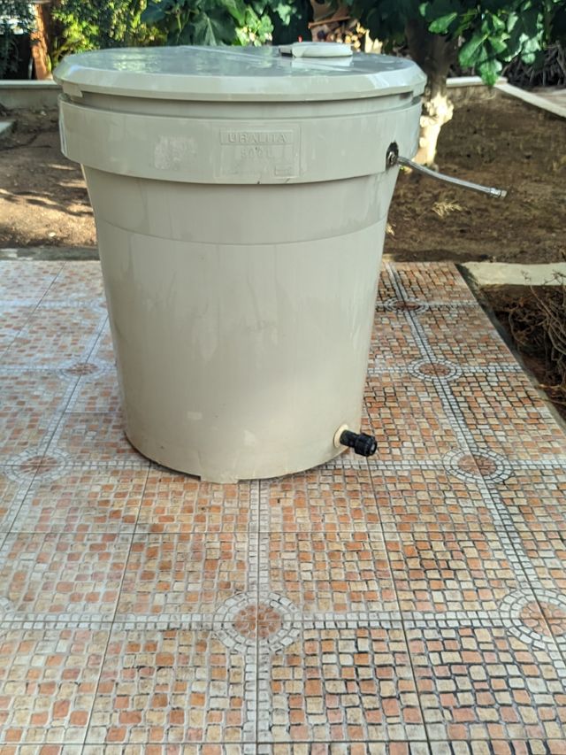Práctico depósito de agua con tapa. - Capacidad de 500 litros. - Fabricado en material resistente. - Incluye grifo para vaciado.