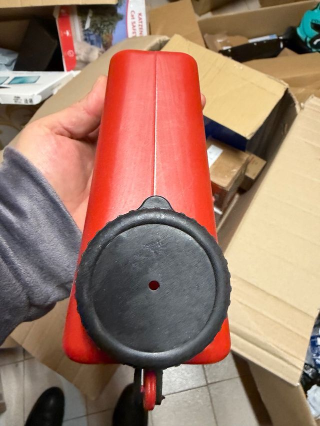 Depósito para pistola de chorro de arena. - Color rojo. - Tapa negra con cierre. - Diseño cónico.
