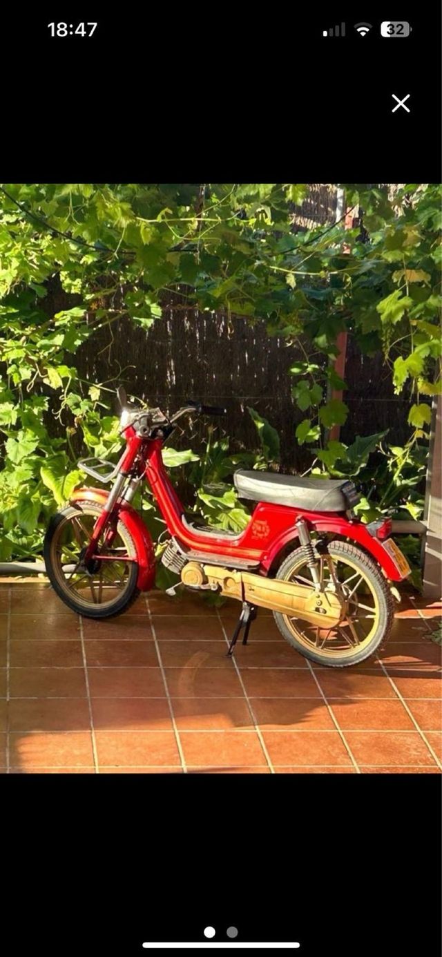 Ciclomotor en buen estado, con un diseño llamativo. Puesta a punto, canvio de neumáticos, itv al día... - Color rojo brillante. - Llantas doradas. - Asiento negro.