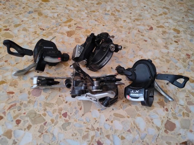 Componentes de transmisión Shimano XT. - Cambio trasero Shimano Deore XT. - Desviador delantero Shimano Deore XT. - Maneta de cambio Shimano Deore XT.