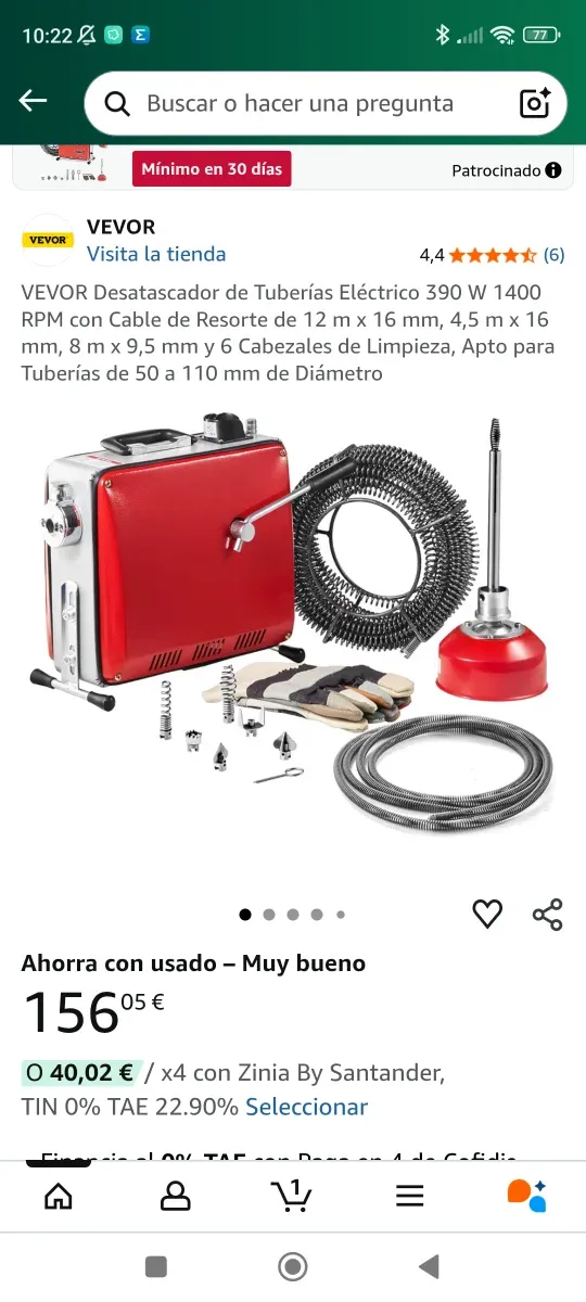 Detalles del productoDesatascador de tuberías eléctrico VEVOR en color rojo.