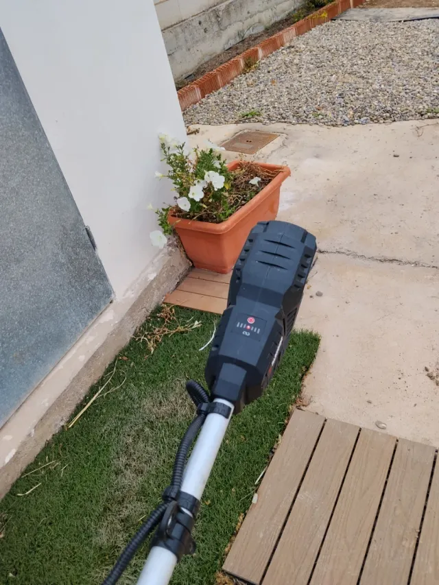 Desbrozadora a batería, ideal para el mantenimiento de jardines. Se vende sin la batería. Falla el motor - Diseño ergonómico. - Mango ajustable.