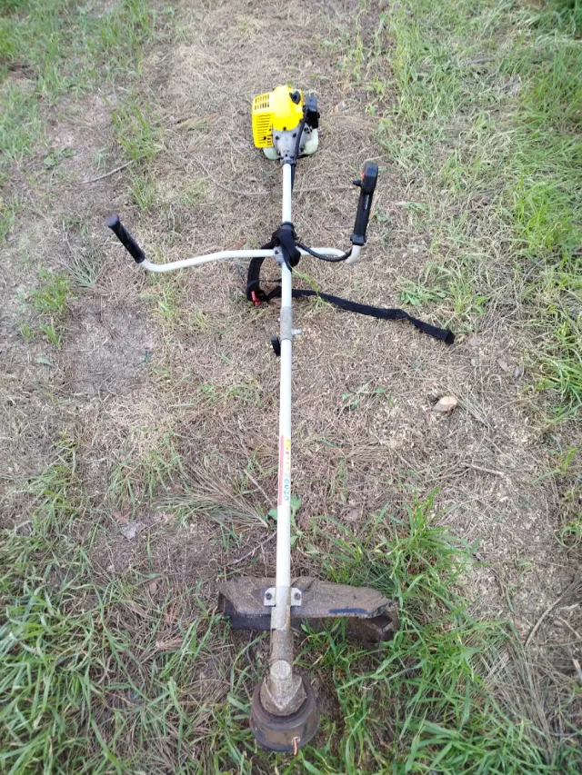 Detalles del productoDesbrozadora de gasolina con motor amarillo.