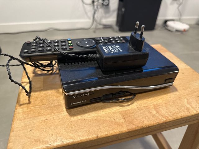 Descodificador de satélite VU SOLO PRO. - Modelo DVB-S2 HD PVR. - Incluye mando a distancia y adaptador de corriente.