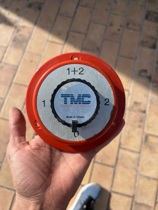 Desconectador de batería marca TMC con selector de posiciones. - Selector de posiciones: 0, 1, 2, 1+2. - Fabricado en Taiwán.