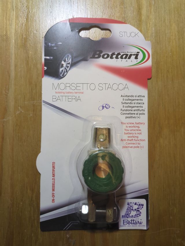 Detalles del productoDesconectador de batería Bottari modelo MORSETTO STACCA para terminales de batería.