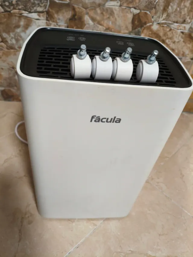 Deshumidificador Facula en color blanco. Cuenta con ruedas para facilitar su movilidad. - Diseño moderno y compacto. - Ruedas integradas para transporte.