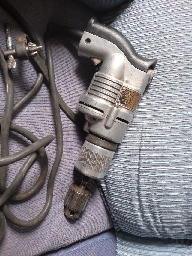 Detalles del productoTaladro eléctrico antiguo vintage Desoutter. Robusto, metalico y construcción industrial britanica años 40-60. Alargado. Tapping. Heat-sink. Funciona. Lo sigo usando a dia de hoy. Sin oxidos, sin chispazos, cable en buen estado aunque cuesta meterlo (se ve en la foto). Objeto de colección, buscado y bien valorado. Abierto a propuestas, porque nose realmente su valor.