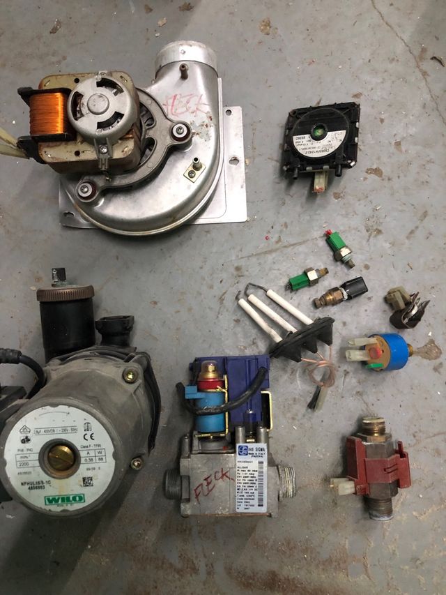 Piezas de despiece para caldera estanca. - Bomba de circulación Wilo. - Ventilador. - Válvula de gas. - Ignitor. - Presostato. - Varios componentes adicionales.