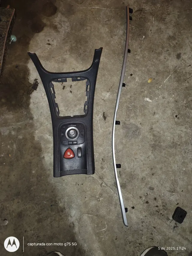 Piezas de despiece de consola central y moldura. - Consola central con botones. - Moldura decorativa plateada.