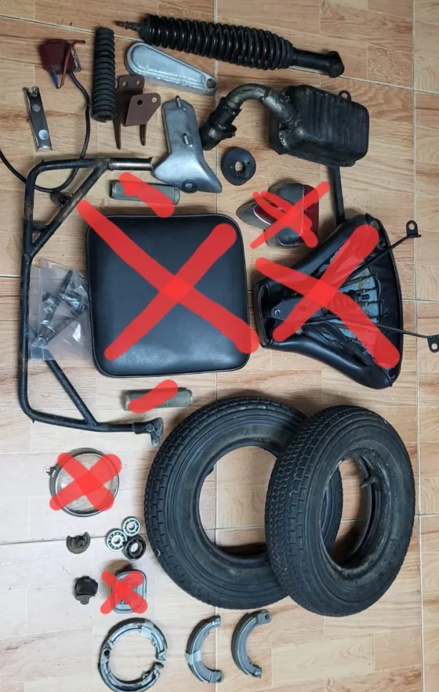 Piezas de despiece para Vespa de 1955. Se vende preferiblemente en lote, lo que se ve en las fotos, que no esté tachado en rojo.