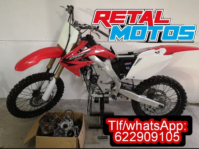Detalles del productoDespiece o desguace de honda crf 250 año 2005 recambios compatibles con año 2006 2007 2008 2009.... Culata cilindro carter cigüeña caja de cambios tapa de encendido tapa de embrague semicarter bomba de agua arbol de levas carburador caja de filtro sub chasis bobinado volante mágnetico cdi bobina de altas pedal de arranque basculante bieleta amortiguador ruedas horquillas tijas frenos silencioso colector depósito asiento plasticos manillar.....