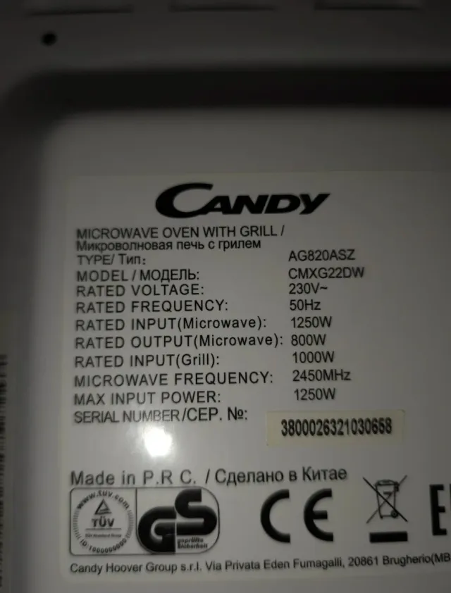 Detalles del productoPiezas de repuesto para microondas Candy. Modelo: CMXG22DW