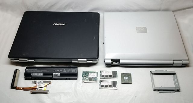 Detalles del productoDespiece de ordenadores portátiles HP Compaq V5000 y Fujitsu FMV Biblo NB75J con todo lo que se puede ver en las fotos.