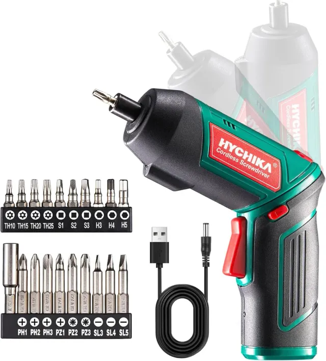 Destornillador eléctrico con 6 N.m Máximo Par y mandril magnético: Operación continua a plena potencia y par completo (puede atornillar 340 tornillos después de cada carga completa), utilizando más ahorro de mano de obra. Adecuados para ensamblar y reparar muebles, aptar para uso DIY, doméstico y de oficina. El portabrocas magnético puede ser más conveniente y el reemplazo rápido de diferentes tipos de accesorios (No necesita apriete de rotación, simplemente conecte o desconecte directamente)