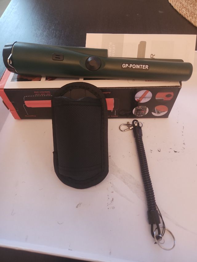 detector electrónico para oro y toda clase de metales preciosos para profundidad e incluso dentro del agua con todos sus accesorios correa y funda