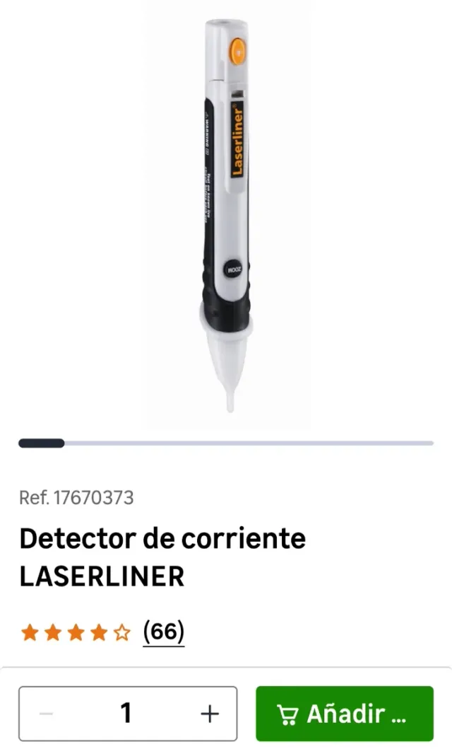 Detector de corriente de la marca LASERLINER de Leroy Merlín. Usado una vez. Lo envío sin pilas. Electricidad, voltaje, vatios, polaridad, bricolaje.