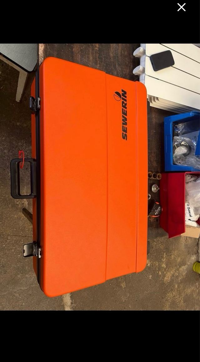 Detector de fugas Sewerin EZ-TEC HS 680 en color naranja. - Incluye maletín de transporte. - Asa robusta para facilitar el agarre.