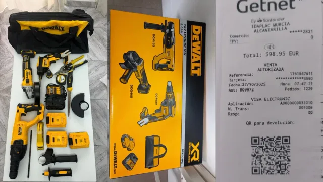 Detalles del productoKit de herramientas DeWALT 18V de litio, modelo DCK304P2. Incluye varias herramientas y accesorios.